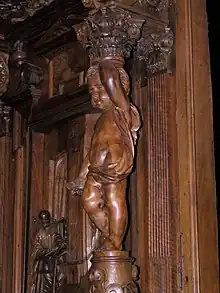 A notable example of wood carving is the choir, near the walls of the nave, carved by Carlo Garavaglia in 1640–1645.
