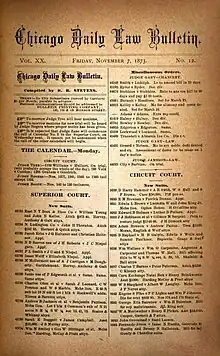 - 1 2 "Chicago Daily Law Bulletin Celebrates 160 Years", Illinois Press Association PressLines, January 2014, p. 14