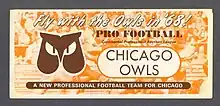 The Chicago Owls were a professional American football team based in Chicago, Illinois. They were members of the Professional Football League of America (PFLA) in 1967 and, after the leagues merged, the Continental Football League (COFL) during the league's last two years (1968–1969).[1] The club was owned by Marty O'Connor and initially coached by Don Branby.[2][3]