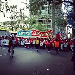 - ↑ "Wednesday classes canceled as CTU members rally in downtown Chicago". WGN-TV. 2019-10-22. Retrieved 2019-10-23.