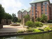Chickasaw Plaza is a plaza along the Bricktown Canal in Bricktown, Oklahoma City, in the U.S. state of Oklahoma. The plaza features a statue of a Chickasaw warrior, which was sponsored by the Chickasaw Nation,[1] as well as markers describing the tribe's history and land loss following the Indian Removal Act and Trail of Tears.[2][3][4]