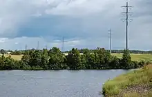 The first section, delimited by the dams of Portage-des-Roches and Pont-Arnaud, would represent a part in upstream of the river almost 20 km (12 mi) in length. Located in the plain of Laterrière, south of Chicoutimi, this section would have a drop of barely 17.3 m (57 ft)[5] and would form a meander and a reservoir retained by the dams of Pont-Arnaud and Chute-Garneau.