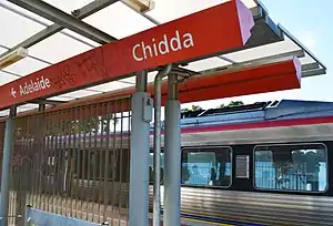 Chidda railway station is located on the Gawler line.[1] Situated in the northern Adelaide suburb of Salisbury, it is 18.6 kilometres (11.6 mi) from Adelaide station.[2]