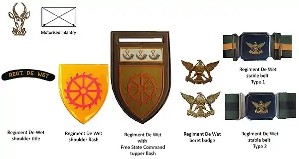Regiment de Wet was absorbed into Regiment Bloemspruit around April 1997.[2]