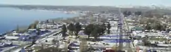 The town is 6 km (4 mi) west of the border with Argentina and 8 km from the Argentine town of Los Antiguos, with which it is connected by a paved road. A car ferry connects the town with Puerto Ingeniero Ibáñez on the north shore of the lake.