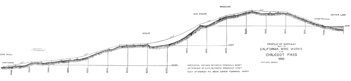 The Chilkoot Trail tramways were aerial tramways that played a significant role in the Klondike Gold Rush and the Chilkoot Trail as a transportation system to move prospectors and equipment towards the Dawson City/Klondike gold fields.