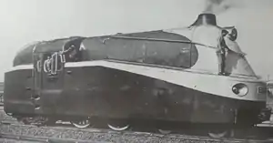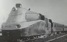 Mantetsu intended to build steam locomotives for high speed passenger trains in the future, and to be competitive with the high speeds attained by diesel trainsets, they needed to be safely operated continuously over long distances. To this end, all bearings were roller bearings from SKF of Sweden to reduce fuel consumption, and the locomotive was designed to make inspection and maintenance as simple as possible, and to maximise the time between maintenance intervals. In addition, the introduction of technically advanced steam locomotives to replace internal-combustion railcars also took into consideration the potential for petroleum shortages in case of war.[1] The streamlining was designed in cooperation with the Kawanishi Aircraft Company at the same time as the streamlining for the Pashina class locomotive Pashina-12 was designed.