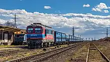 DA1512, an ex-ND2 locomotive owned by GFR with a freight train in Năvodari station