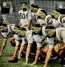 The Bandits were hugely popular among fans. In 1958, a local restaurant gave away free Asian conical hats with meals and sold over 1,400 of them in a single day.[2] A disk jockey wrote a song about the unit, which the LSU band played whenever the unit took the field.[2] A photograph by George Silk of the Bandits dressed in their football uniforms and wearing masks that resembled aged Chinese men were featured in the October 12, 1959 issue of LIFE.[18] They live on today in the "Tiger Bandits" song, played by the LSU marching band after the defense stops an opponent on third down or forces a turnover. LSU fans bow to the defense as the song is played.[19]