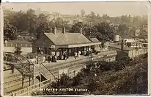 William Bliss, owner of Bliss's Tweed Mills, realised the railway could be useful to him in allowing not only for his cloth products to be taken to buyers, but also for coal to be brought to the mills, which at the time used water power instead of steam. Bliss wrote to the Oxford, Worcester, and Wolverhampton Railway in 1846 to ask for a railway link to Chipping Norton, but this did not yield results.[1] He wrote again to the railway company in September 1847, asking for a "passenger station at Bleddington Mill".[1] A meeting held at the Red Lion pub, Banbury, on 21 April 1851 promoted a railway to connect Banbury with the OW&W's route: this line ran further north than the Chipping Norton Railway would eventually run.[2]