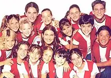 The Chiquititas 2000 (Season Six) main cast. This season was aired in Brazil seven years later as a single story, by SBT.