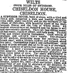 - ↑ Kelly's Directory of Wiltshire for 1927 shows that Gerald Tunnicliffe lived at Chiseldon House.