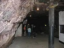 When the aerial bombardment of London began in September 1940, the caves were used as an air-raid shelter. Soon they became an underground city accommodating up to 15,000 inhabitants (who each paid a penny to enter).[3] The tunnels were fitted with electric lighting, toilets and washing facilities; a chapel was built and also a hospital.