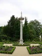 In the eighteenth century statues of Venus were the most common statue in a garden as it was known that the goddess Venus was the protector of gardens and gardeners.[71] The statue that can be seen on the Doric column today is a copy in Portland stone and was commissioned by the Chiswick House Friends in 2009. Other statues that Lord Burlington had made for the gardens included a wolf, a boar, a goat, a lion and lioness, a statue of the Roman god Mercury, a gladiator, Hercules, and Cain and Abel.