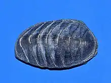 They have a variety of predators both invertebrate and vertebrate including sea stars, crabs, sea snails, birds, and fish.[9] One of the main predators of green chiton are oystercatchers.[8] All species of New Zealand oystercatchers prey on chiton from rocky shores. The birds have adopted a technique where they first, strike a sharp angled blow on the shell plates and if this does not dislodge the organism then the bird will apply pressure on the margin between the foot and the rock surface and use a scissor-like motion to release the grip.[10] This is done until the organism is separated from the surface, and after the valves are taken off by the oystercatcher the chiton is eaten in one piece.[10]