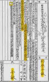- ↑ The birthplace is recorded as Kouzuchi-town, Mugi district in the family registry of the Sugiharas