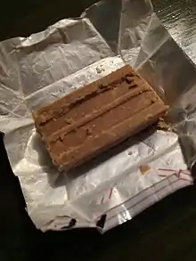 Choc Nut (stylized as Choc⋆Nut) is a trademark for a candy bar manufactured by Annie's Sweets Manufacturing and Packaging Corporation, a Philippine-based company.[1] The ingredients of Choc Nut include peanuts, sugar, milk powder, cocoa powder and vanilla.[1][2] It has endured as one of the country's most-consumed children's snacks.[3] While only mass-produced in the Philippines, many Asian supermarkets and Filipino stores overseas sell the candy. Many restaurants and cafes in the Philippines use Choc Nut as a popular ingredient in confections, drinks, and even cocktails.[1][4]
