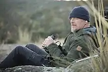 ![]() Chris Morgan on location for his podcast THE WILD with Chris Morgan. Taken by Brenda Phillips in 2021. | |