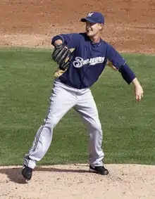 He was recalled by the Brewers from Nashville on June 14, 2009[1] and pitched in his first game with Milwaukee on June 15. He was outrighted to Nashville on July 13[2] after being designated for assignment. He was called up again on August 21[3] and appeared in a game the next day, earning his first major league win. He entered the Brewers starting rotation on September 13 making a spot start in place of Manny Parra[4] and gained his first major league win as a starter on September 23, striking out 10 in the process.