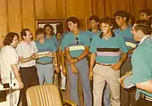 Roupas (sunglasses on shirt) with the 1982 USA-AHEPA All-Star Basketball Team in Greece.