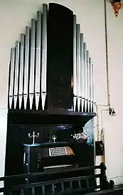 The Pipe organ was installed by the 2nd Battalion The Suffolk Regiment in 1936. This entailed the construction of an additional room for the bellows, windchest and other equipment. The Organ has 14 pipes, arranged in ranks from either extremity. In its present form, the Organ is not functional as a result of vandalism of equipment over the years.