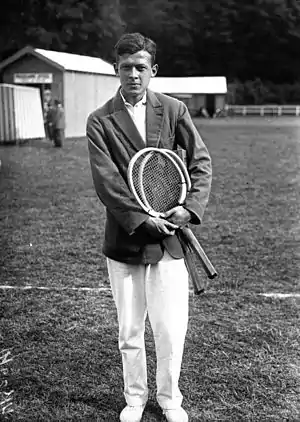 In his student ages he studied advertising.[26] His 1930 season was interrupted because he had to fulfill his military service.[7] While playing amateur tennis, he worked as a tire salesman in the meantime.[27] Later he was appointed the director of communications for IBM France.[13] Apart from his tennis playing style, he is known as the first man to wear shorts instead of pants on court.[28][29] He was in a civil partnership with French parfume designer Germaine Cellier with whom he lived together for 30 years until she died in 1976.[30] He died at the age of 95, the last surviving Musketeer.[13] He had a brother Roland, also amateur tennis player, with whom he won the doubles title of the Le Touquet Spa Championships in 1937, while also winning the singles and mixed contest as well.[31]
