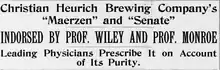 - ↑ "The Best Beer in the World". Evening Star. May 18, 1901. p. 8. Retrieved February 6, 2022 – via Newspapers.com.