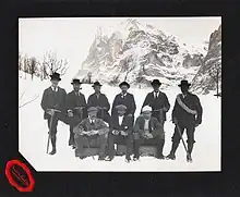 Whether Christian and Hans really did conspire to deny Fay the first ascent of "his" mountain remains unclear due to a lack of primary evidence.[69] Birrell does say that “the Kaufmann brothers had a reputation for playing practical jokes.”[70] Indeed, Christian may well have had a role in “The Remains of Edward Whymper” prank played on the famous English mountaineer (see above) in 1901. And Edward Feuz, Jr., was convinced about the deception and viewed the two Kaufmann with great disfavor.[71] However, Feuz’ version of the events should be viewed skeptically, since he may have been jealous of the popularity and successes of the Kaufmanns, especially their independence, genial nature, English fluency, and above-average gratuities from clients.[72]