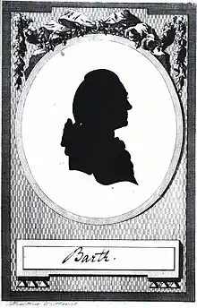 Christian Samuel Barth was born in Glauchau, as the son of the merchant George Samuel Barth. He studied at the Thomasschule zu Leipzig, where he was educated by Johann Sebastian Bach.[1] As an oboist, Barth worked from 1753 in the court orchestra in Rudolstadt, from 1762 in Weimar, from 1768 in Hannover and from 1772 in Kassel. Finally, in 1786, he became a member of the Hofkapelle at the royal court in Copenhagen, which was then briefly under the direction of Johann Gottlieb Naumann. On account of his age and infirmity, he was relieved from his duties in 1798 and received an annual pension of 500 Reichsthaler until his death in 1809.[2]