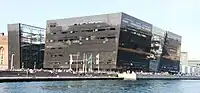 The Black Diamond, designed by schmidt hammer lassen is a modern extension for the Royal Danish Library which opened in 1999. Two glazed skyways span the street.
