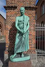 A bronze cast of a Greek statue of Demosthenes stands outside the gate to Proviantgårdspassagen. Herman Wilhelm Bissen's Isted Lion was formerly located in front of the gable of the Royal Arsenal Museum but it was returned to its original location in Flensburg Cemetery in 2011.