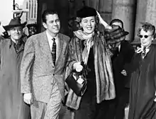 After her surgeries, Jorgensen originally stated that she wanted a quiet life of her design. However, upon returning to the United States, she could only earn a living by making public appearances.[21] Jorgensen was an instant celebrity when she returned to New York in February 1953. A large crowd of journalists met her as she came off her flight, and despite the Danish royal family being on the same flight, the audience largely ignored them in favor of Jorgensen.[22] Soon after her arrival, she launched a successful nightclub act and appeared on television, radio, and theatrical productions. The first five-part authorized account of her story was written by herself in a February 1953 issue of The American Weekly, titled "The Story of My Life." In 1967, she published her autobiography, Christine Jorgensen: A Personal Autobiography, which sold almost 450,000 copies.[6]