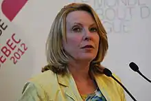 She holds a Bachelor of Social Science degree from the University of Moncton. Prior to her political career, St-Pierre worked as a journalist for Radio-Canada from 1976 to 2007. She was a political correspondent in Quebec City for five years before working as a correspondent in Washington, D.C. for four years before returning to Canada. During her stint as a political correspondent in Ottawa, she wrote a letter in Montreal's newspaper La Presse praising the Canadian military mission in Afghanistan. She was suspended due to rule infringement because of the statement of her opinion.[1]