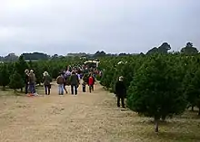 Christmas tree farming is a relatively new agricultural pursuit in Australia with the industry only sprouting up within the early 21st century.[1] There are a number of differences in Christmas tree production in Australia when compared with nations in the Northern Hemisphere. The growing season differs because harvest is during a different time of year, this means that lessons learned about farming in the United States and Europe are more difficult to apply to Australia.[1] The seasonal difference also affects the pruning and shearing schedule for the crop. The other primary difference in Australian Christmas tree farming is found in the type of tree grown, Pinus radiata, which is no longer commonly grown for Christmas trees in the United States and Europe, is popular in Australia.[1]