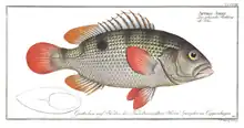 In India he lived in poverty for a while and then began to follow the system of Serampore to be involved in education. He then became involved in establishing a school for the children of Europeans as well as one for Indians where the children paid for the education by working on plantations. The funding crunch was brought on by the clash between England and Denmark and John made use of local teachers.[2] John was influenced into the study of natural history by Johann Gerhard König[3] and began to collect specimens. He sent fishes, along with illustrations made by natives to Patrick Russell and to Marcus Élieser Bloch in Berlin. He began a botanical garden[4] and sent plant specimens to William Roxburgh.[5] He used sessions of observation under the microscope as part of his religious teaching. In 1770 he visited J. H. Chemnitz in Elsinore and corresponded with him subsequently. Chemnitz was a promoter of a form of natural theology known as testaceotheology or the use of molluscs for preaching.[3] Patrick Russell named Eryx johnii and Bloch named Lutjanus johnii after him.[6] The naturalist Heinrich Julius Lebeck (1772–1800), a former student of John, made two visits to Tranquebar. John called Lebeck as the crown of his former educational establishment and had Bloch name the fish Uranoscopus lebeck after him.[7] John could speak English, Portuguese and Tamil apart from German.[8][9][10] John fell afoul of many in the mission and faced much opposition to his involvement in education.[1][11]