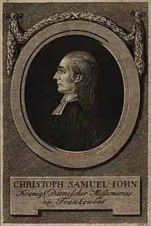 Christoph Samuel John (11 August 1747 – 1 September 1813) was a German missionary in the service of the Danish-Halle Mission in southern India at the Danish settlement of Tranquebar (Tharangambadi). He promoted schools, natural theology, and collected specimens of local natural history which he sent to collaborators and several species have been named from his collections including the plant Impatiens johnii, the snake Eryx johnii and the fish genus Johnius and the species Lutjanus johnii.