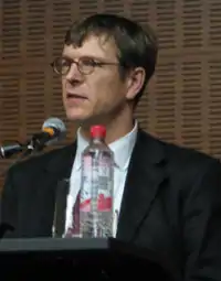 Christoph von Marschal speaking in Frankfurt, Germany.