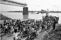 On 24 March 1972 People's Army of Vietnam/Khmer Rouge Sappers blew up an explosive-packed vehicle on the bridge, collapsing several spans into the Mekong River and killing three civilians.[3]