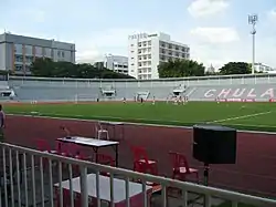The Chulalongkorn University Stadium, formerly Charusathian Stadium, is a multi-purpose stadium owned by Chulalongkorn University in Pathumwan, Bangkok, Thailand. It is on Chulalongkorn Soi 9 in Pathumwan in the centre of Bangkok and holds 20,000. It is used mostly for football matches and to host intra- and inter-university sports competitions the student body participates in. The stadium is the home of Chamchuri United F.C. of the Thai League 4, and previously served as the home stadium for the now defunct BBCU F.C. (formerly known as Chulalongkorn University F.C., Chula-Sinthana F.C. or Chula United).