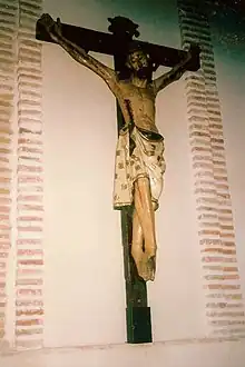 In the front of the north nave is located perhaps the most important piece preserved in the church: a Byzantine style Calvary dated around 1300. The faces of the Virgin and Saint John, slightly inclined, show a compassionate gentleness before the image of Christ Crucified, called this one of the Encina, to which great devotion is professed.[14]