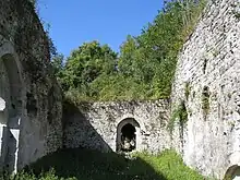 The funeral chapel on the north side is of a square layout. It has no openings, and is roofed with a simple ribbed vault, which has helped protect the scalloped brackets upon which the roof rests.