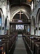 A stone reredos designed by the London architect R J Withers was added in 1877 with decoration by the famous mosaicist company of Antonio Salviati in 1881. Between 1885 and 1888 the church architect William Butterfield made additional improvements to St Andrew's which included reroofing the chancel and the addition of a new vestry. The chancel and organ chamber were damaged by a fire in November 1953 and were restored between 1953 and 1955 which included adding an organ gallery at the church's West end.[1]