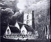 The church is the setting for an annual ceremony known as Clipping the church. It is an ancient custom that is traditionally held on Easter Monday or Shrove Tuesday in the United Kingdom. The word "clipping" is Anglo-Saxon in origin, and is derived from the word "clyp-pan", meaning "embrace" or "clasp".[4] Clipping the church involves either the church congregation or local children holding hands in an outward-facing ring around the church. Once the circle is completed onlookers will often cheer and sometimes hymns are sung.[5] At Rode the circle faces inwards and participants dance to the left and right before rushing inwards and cheering.[6] John Michell and Margaret Murray suggest that the nocturnal ritual at Rode may have had non-Christian (possibly neopagan) motivations.[7]
