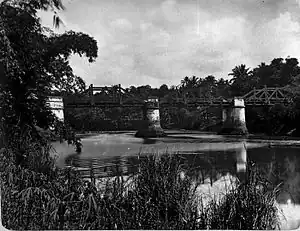 The rivers in Banten, the westernmost province of Java, run roughly parallel to each other. The main ones are the Peteh, called the Banten on the lower reaches near the city of Kota Banten, the Ujung, which enters the sea at Pontang, the Durian, which enters the sea at Tanara, the Manceuri, and the Sadane, which rises in the mountainous region of Priyangan and in 1682 formed the border between the Dutch East India Company (VOC) territory and Batavia (modern Jakarta).[1]
