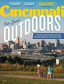 Cincinnati magazine is a monthly lifestyle magazine concerning life in and about Cincinnati, Ohio. It was created by the Greater Cincinnati Chamber of Commerce in 1967.[1] It was then purchased by CM Media in 1981.[1] By 1997, the magazine had a circulation of some 30,000 and was acquired by Emmis Communications.[1] During the early-mid-2000s, the magazine prospered, doubling both circulation and revenues and moving its facilities to Cincinnati's tallest building, Carew Tower.[2] It was purchased by Detroit-based Hour Media in 2017.[3] It is a member of the City and Regional Magazine Association (CRMA).[4]