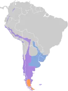 The cinereous harrier (Circus cinereus) is a South American bird of prey of the harrier family. Its breeding range extends from the Tierra del Fuego through Argentina and Chile to Bolivia, Paraguay, Peru and southern Brazil; and across the Andes north to Colombia. The bird's population is declining but due to its large range is not considered vulnerable.[2] The term cinereous, deriving from the Latin word for ashy, describes its colouration.[3]