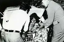 As soon as the trio had left, Colasanti, though in shock, began shouting and throwing blows at the trunk walls to draw attention. At 10:50 PM, a night watchman heard the noises. He alerted police in a nearby Carabinieri squad car, who raised the alarm with the following coded message: "Swan, swan, there's a cat meowing inside a 127 on Viale Pola." This was intercepted by photojournalist Antonio Monteforte, who rushed to the scene and was able to photograph the opening of the trunk and the discovery of Colasanti and Lopez's corpse.[1] Colasanti was rushed to the hospital, where she was diagnosed with several severe injuries and a fractured nose. In addition, the ordeal caused her very serious psychological damage, from which she never fully recovered.