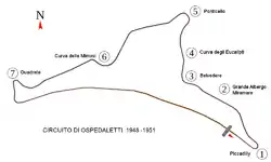 The Autodromo di Ospedaletti was the second designated venue for the San Remo Grand Prix from 1947 to 1951, after the original San Remo street circuit of the 1937 Grand Prix was no longer able to support the changing requirements of post-war Grand Prix racing.