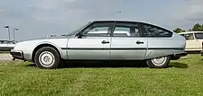 The Citroën CX is a large, front-engined, front-wheel-drive executive car manufactured and marketed by Citroën from 1974 to 1991. Production models were either a standard wheelbase or a stretched, more luxurious, four-door fastback saloon, as well as a station wagon (estate), on the longer wheelbase. The CX is known for its hydropneumatic self-leveling suspension system (continued and improved from its DS predecessor), and its (at the time) low 0.36 drag coefficient, normally noted as a vehicle's in French. Restyled as 'CX', the model name underscored this.
