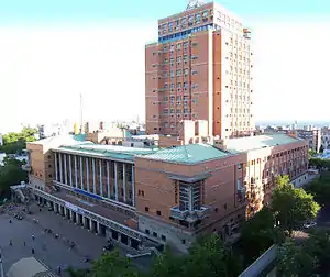 The west wing of the building hosts the Museum of History of Art. The Municipal centre of Photography includes the Photographic Archive of Montevideo, which is a service where the public can acquire copies from the material of the archive.[7] On the back side of the building, there is an external elevator taking the public to floor 22 of the building where there is a city observatory. Also on the back of the building is the Direccion de Necropolis which supervises the cemeteries of the city.[8]